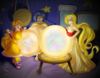 One evening, Gloria decided to hold a special gathering with her friend Marcy and her good acquaintance Trini. Not long after she finished her day's work of fortune telling, she had everyone gather around the table where she usually has her clients. Then, with a mighty magical puff she swelled her belly to a comfortably large size and invited the others to do the same. No sooner did they do so than their bellies also began to balloon with the same magic she had.
